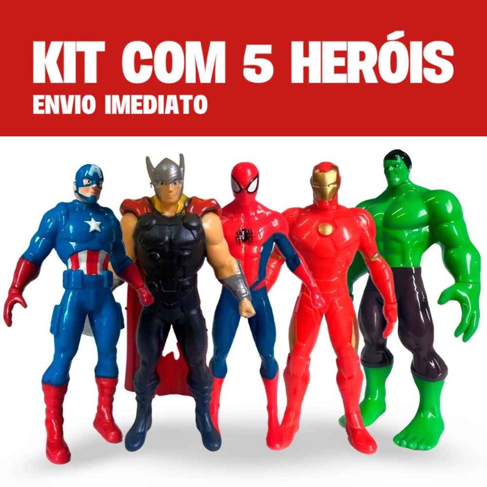 Kit 5 Bonecos Vingadores Marvel Herói - Colecionaveis Avengers - Homem Aranha Hulk Pantera Negra Homem Ferro