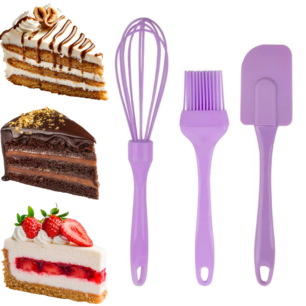 Este kit de utensílios de cozinha é composto por 3 peças de silicone, práticas de lavar, não grudam