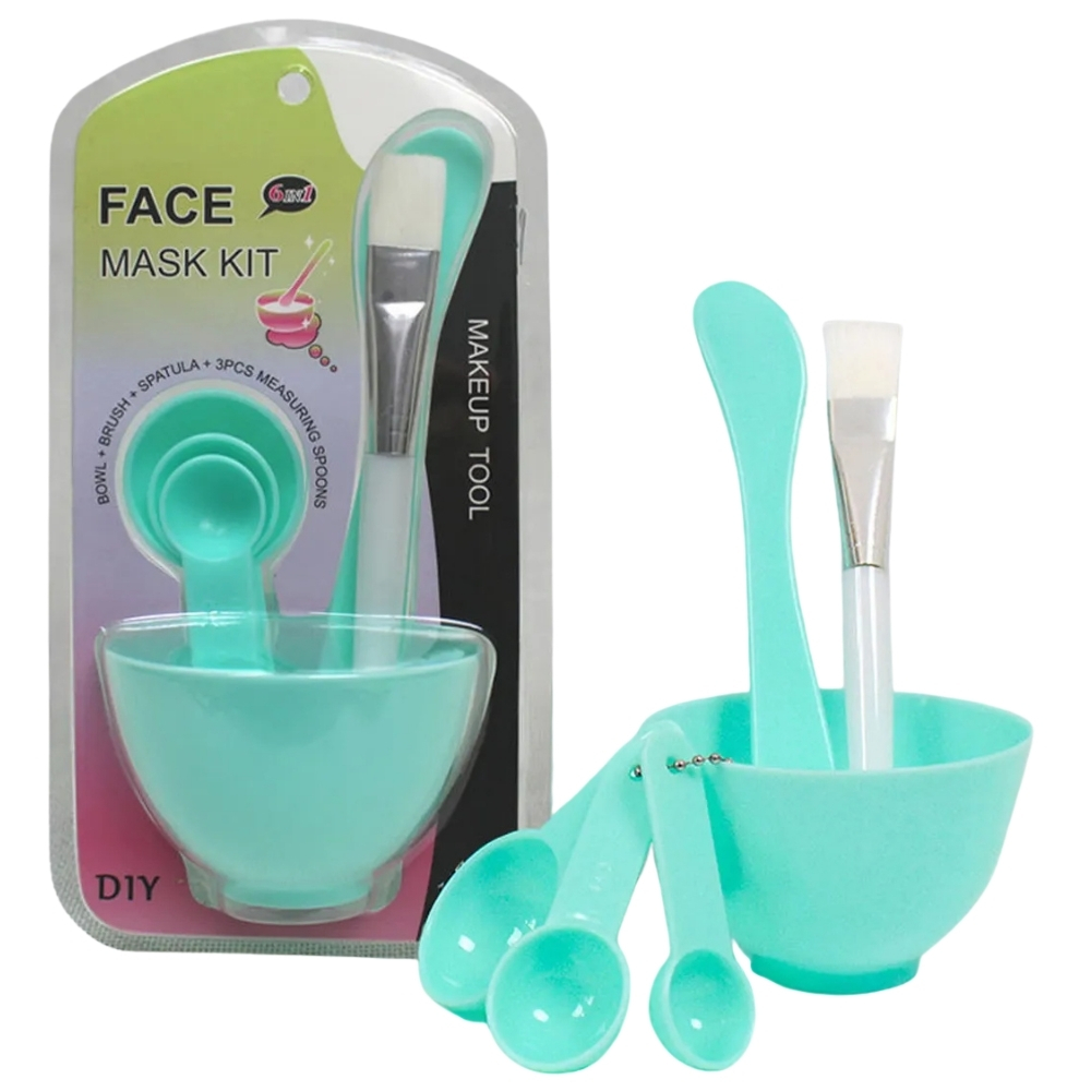 Kit Skin Care 6 Peças com Acessorios Color - 1 Pote de Misturar, 3 Medidores Pequenos, 1 Pincel, 1 Espátula